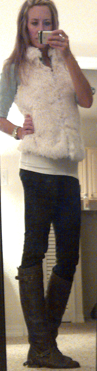 I bought a fur vest....and its LOVE! I love this vest. So warm and soft and goes well with so much. I found it at Kohl's for 40% off! It was obviously a match made in vest heaven :)